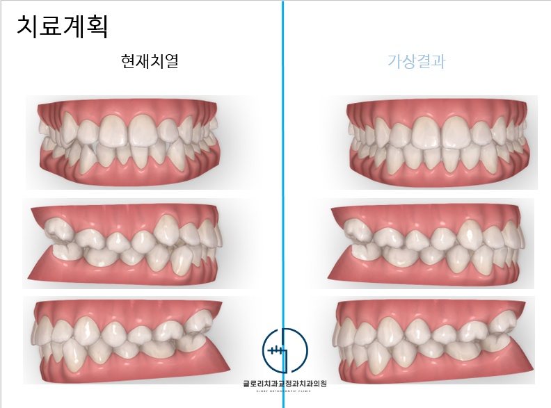 현재 나타나는 골격성 1급 부정교합을 개선하기 위해서는 치열을 가지런히 재배열하는 교정이 필요합니다.