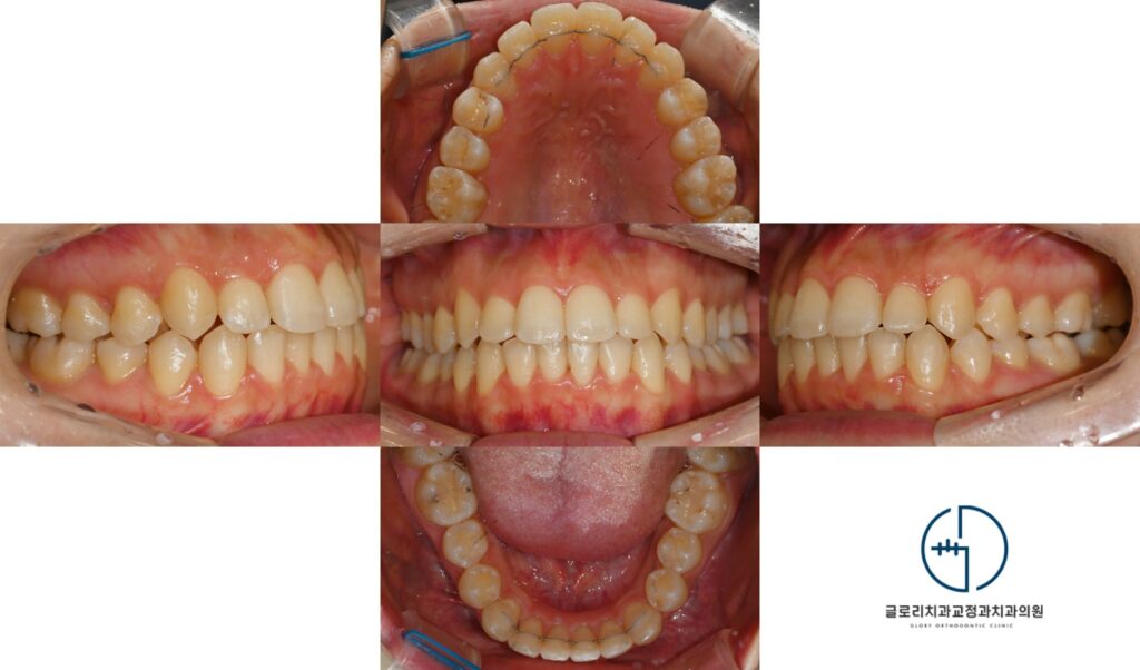 단계별 교체과정을 통해 불규칙했던 치열이 개선되고 모든 치료가 마무리된 구강을