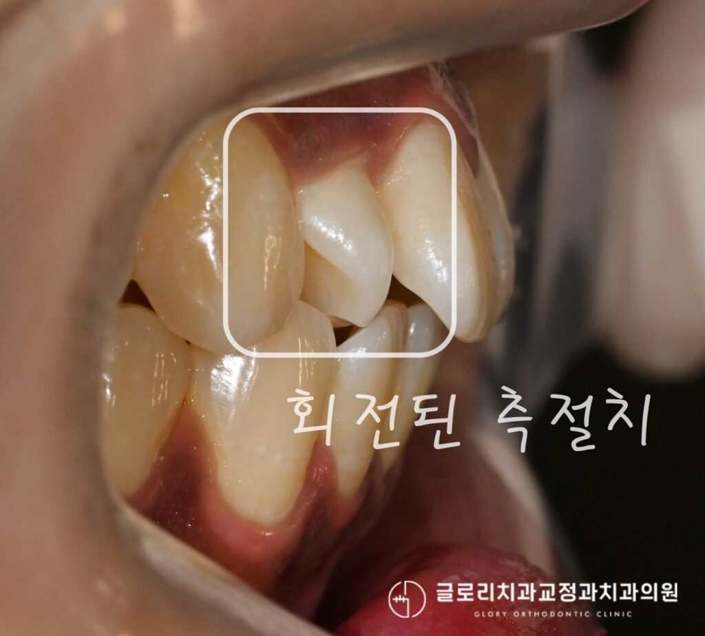 이번 케이스에서 또 한가지 중요하게 다뤄진 부분이 바로 안쪽으로 심하게 회전되어있던 상악 측절치였는데요.