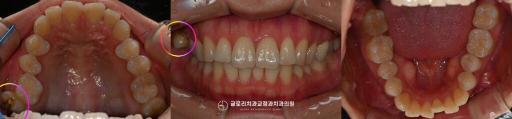 이 과정에서 쓰러져 있던 어금니가 똑바로 세워지면서 가위교합이 점차 사라지게 됩니다.