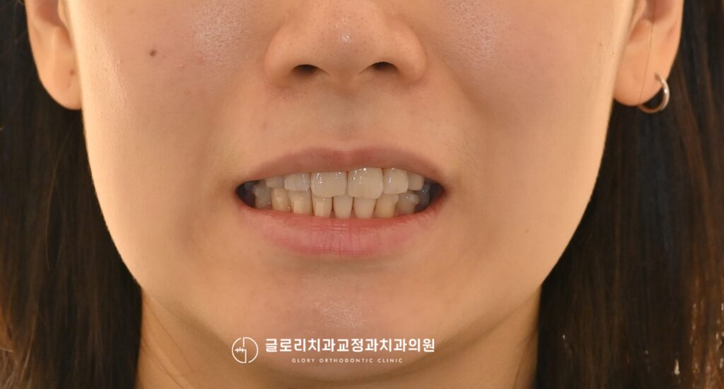 다만 턱뼈 자체의 비대칭이나 골격적인 문제가 아니라면 치아 배열만 교정해도 충분히 개선이 가능합니다.