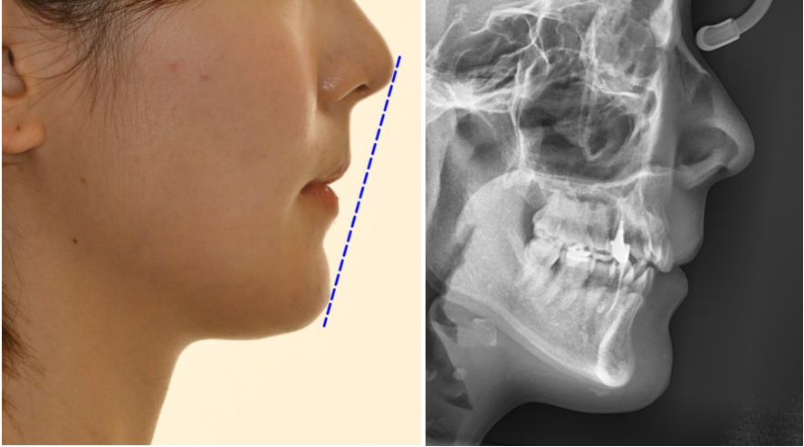 턱끝이 뒤로 들어가 있는 무턱 형태인지,