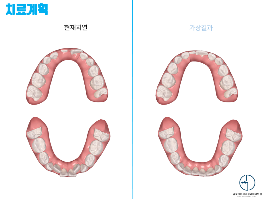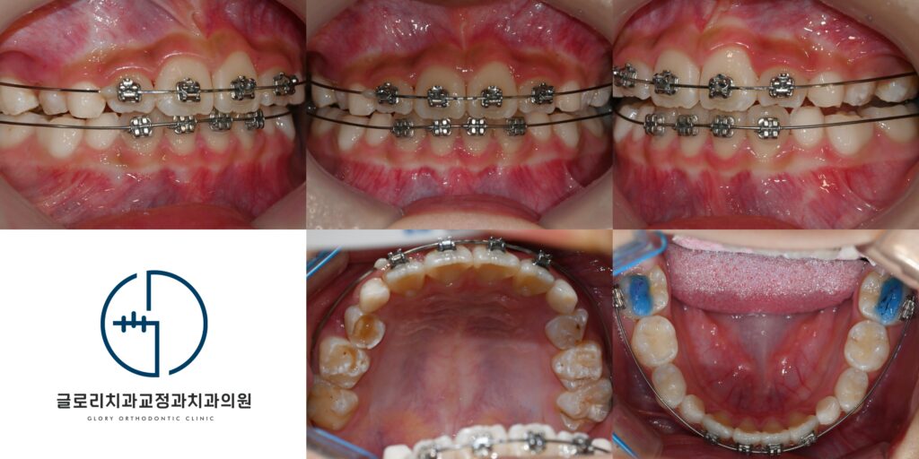 대신 안으로 쓰러진 치열을 바로 세워주는 방식으로 어느 정도 공간을 확보합니다.