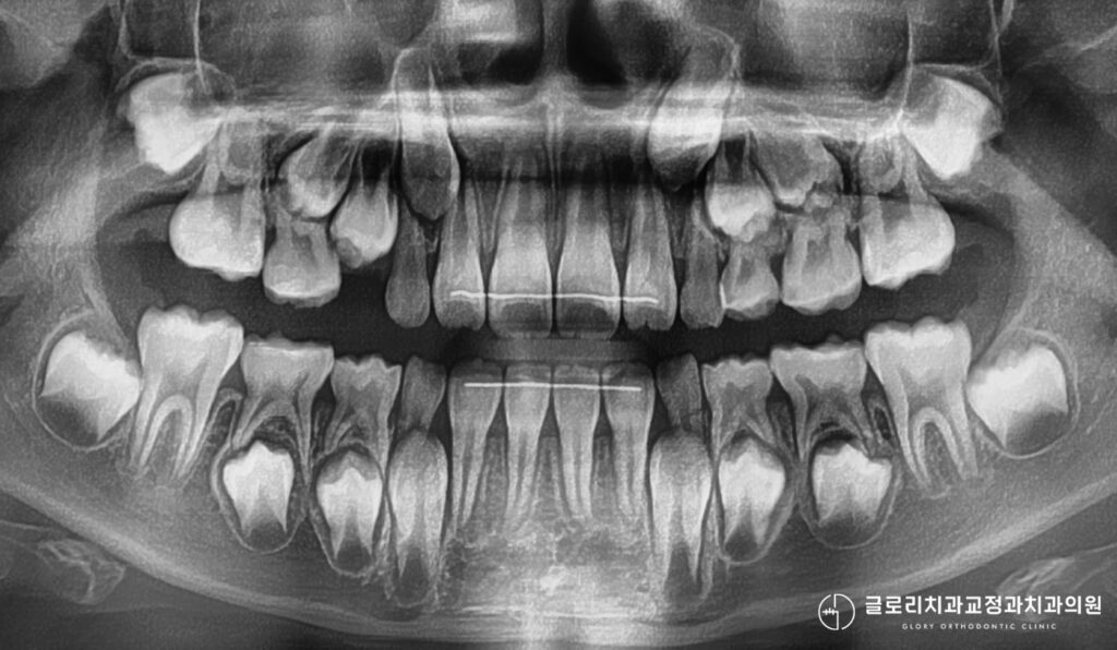 1차 교정이 마무리되어도 영구치 맹출이 진행 중이라면 정기적인 관찰이 필요할 수 있습니다.