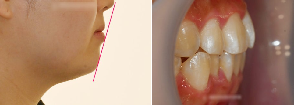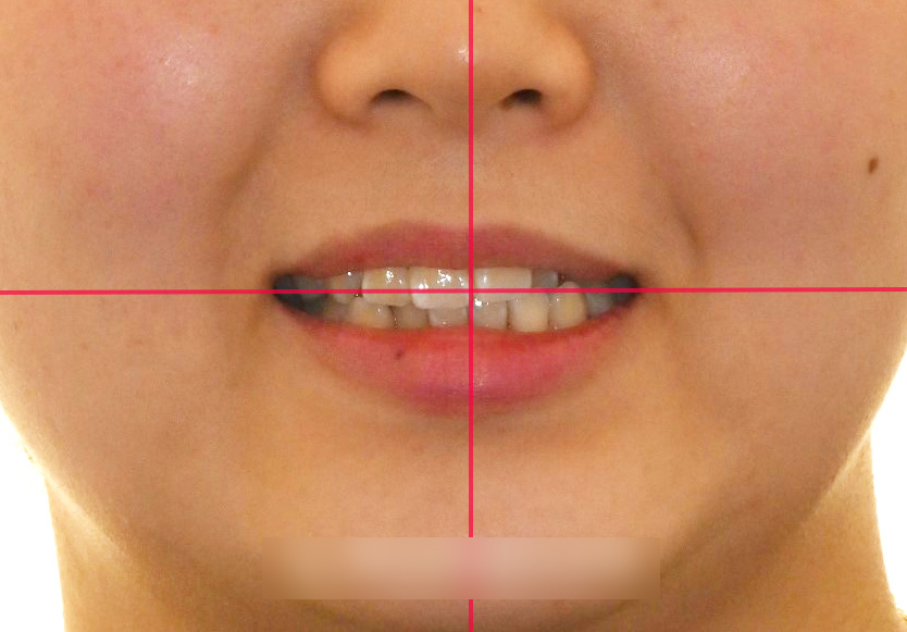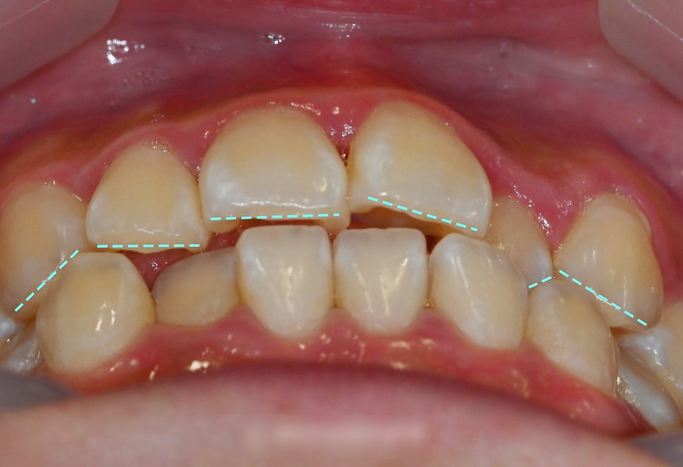가상의 선을 보면, 얼굴과 치열의