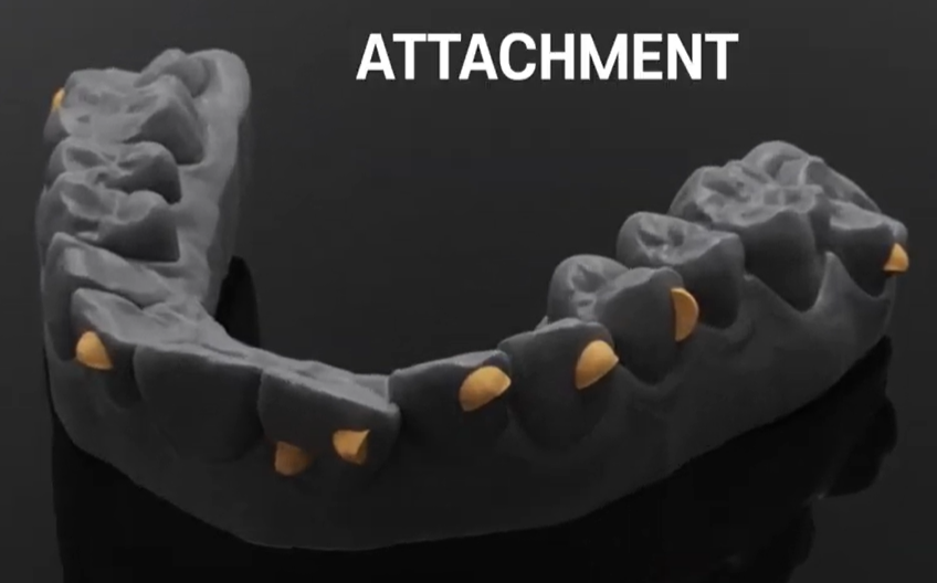 어태치먼트는 치아 표면에 부착하는 작은 돌기 형태의 장치입니다.