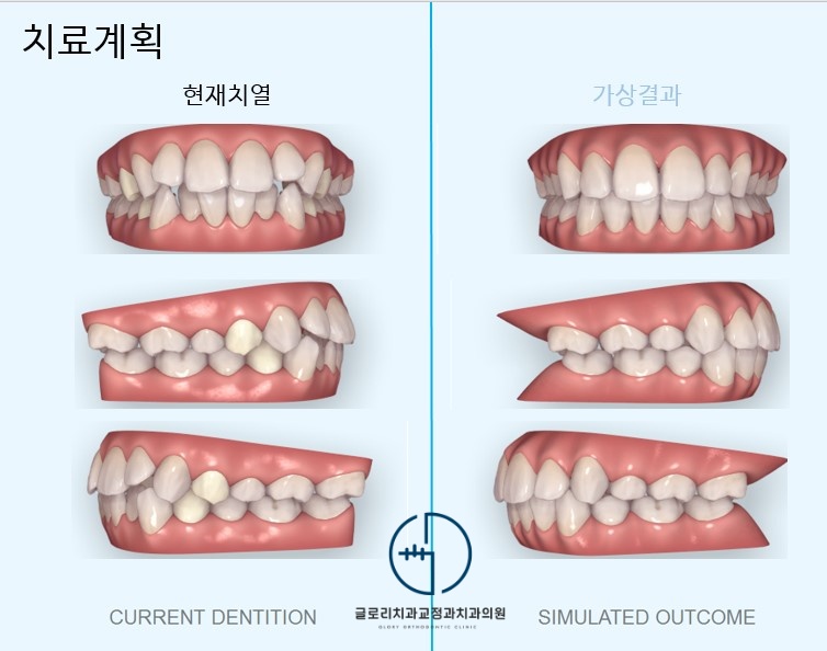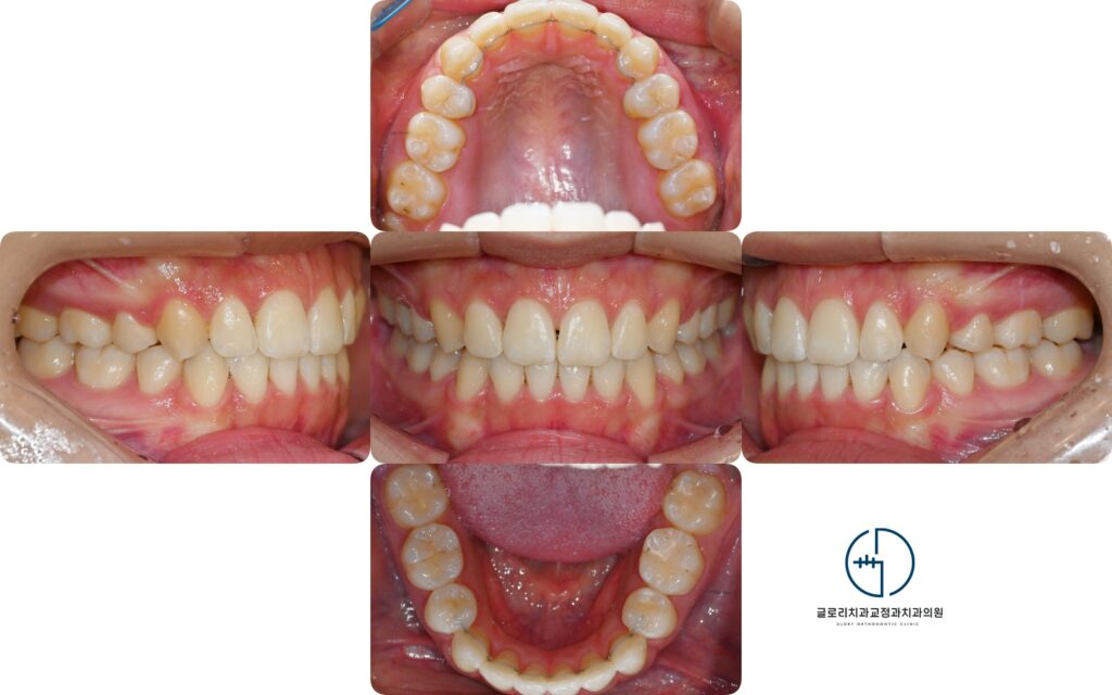 이러한 경우에는 부족한 공간 확보와 돌출된 상악을 후방으로 이동시키기 위한 발치교정이 필요할 수 있습니다.