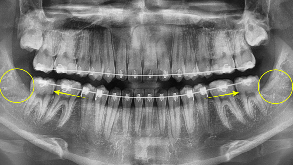 또한 하악 사랑니 발치도 치료 계획에 포함됩니다. 사랑니는 아랫니를 후방으로 이동시키는 데 물리적 장애물이 될 수 있으며, 특히 3급 부정교합 환자에서는 하악 전치의 후방 이동을 위한 공간 확보가 매우 중요하기 때문입니다.
