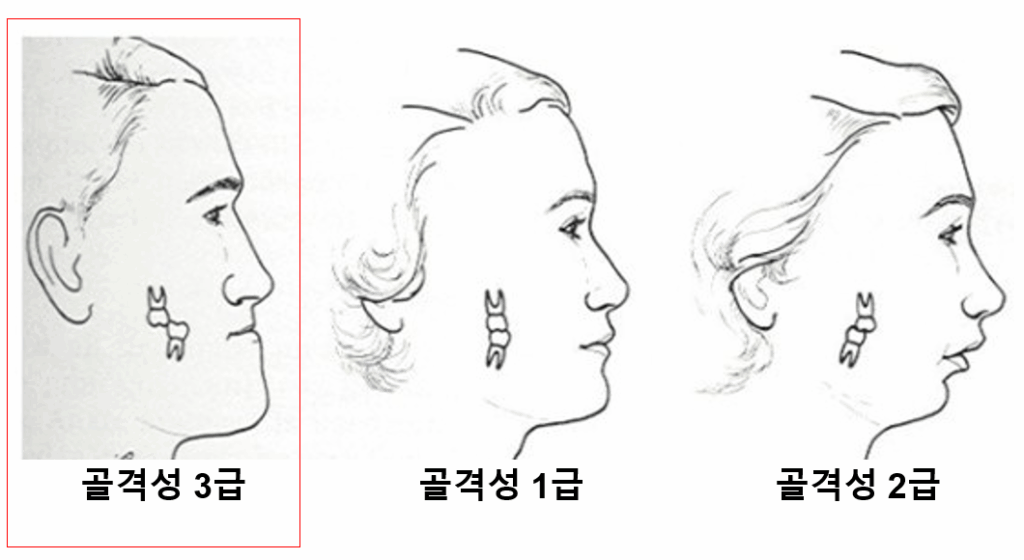 바로, 전후방적으로 위턱에 비해 아래턱이 큰 골격적 특징 때문입니다.