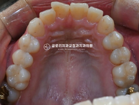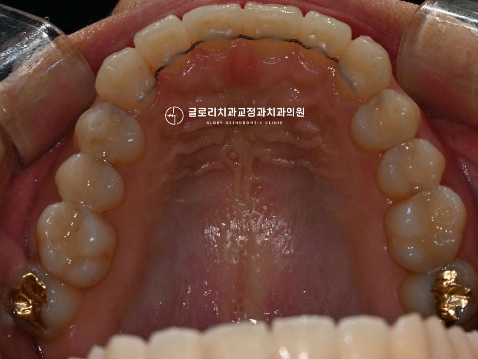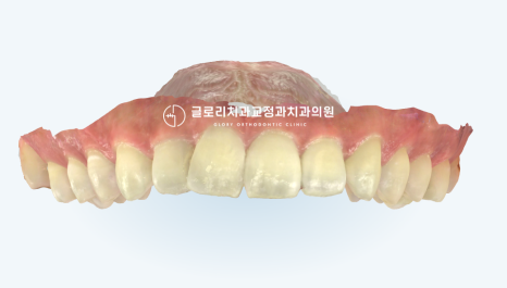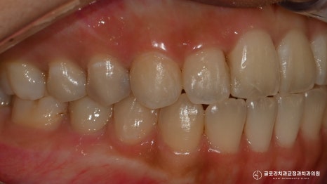 틀어진 앞니가 제자리를 찾아 배열되었으며