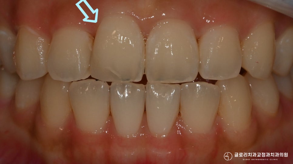 초진 사진을 보면 우측 상악 앞니 한 곳이