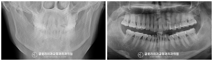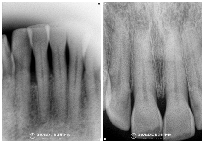 하악 전치부 일부 치아를 볼 수 있었습니다.