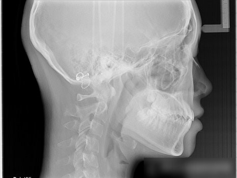 오른쪽 결손부위로 인해 틀어진 정중선까지